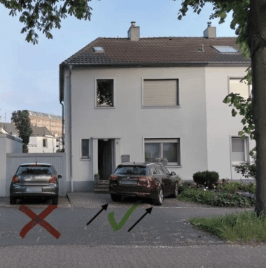 Parkplatz befindet sich in einer ruhigen Anlieger Straße auf privatem Grundstück. Es steht ein Parkplatz zur Verfügung quer vorm Haus wie auf dem Foto zu erkennen.