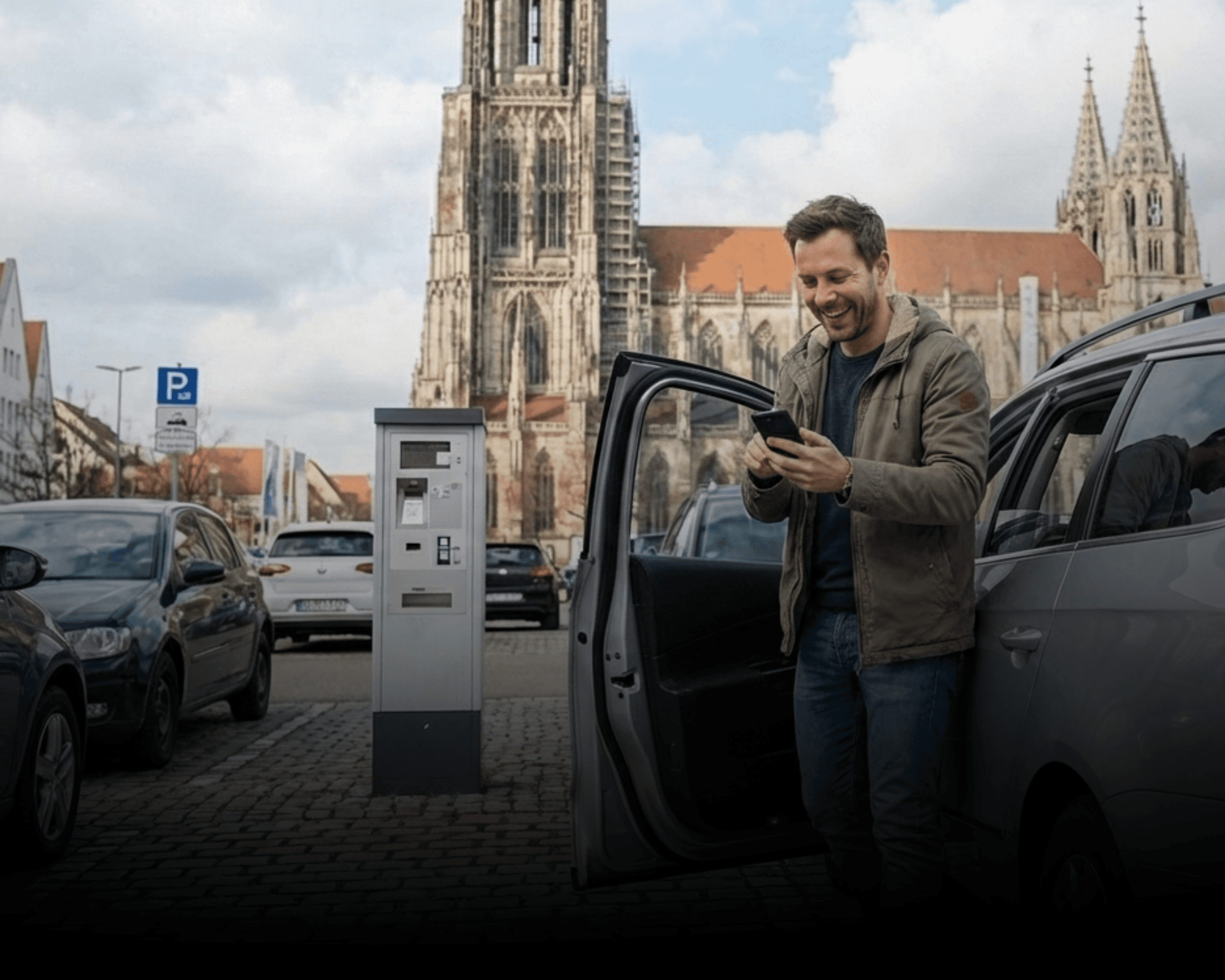 Parken in Ulm wird digital: Mit der Peuka-App ziehst du dein Parkticket bequem vom Handy und buchst private Parkplätze. Partner des Stadtmarketing Ulm. Jetzt App laden!